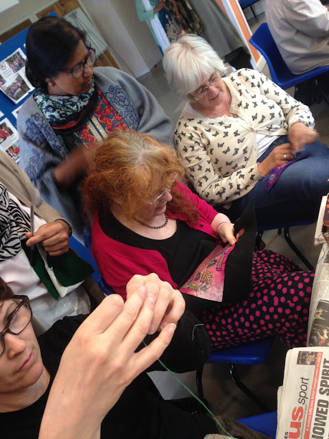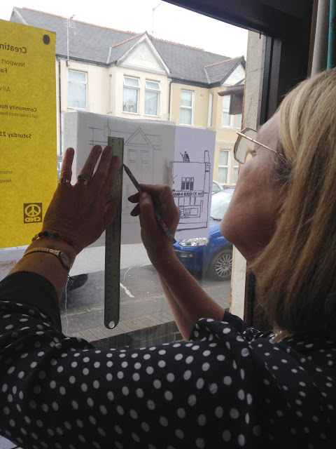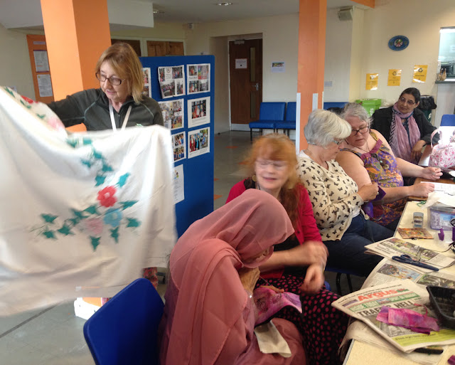 In this session we covered a lot today, from scanning photos and fabrics for image transfers to learning some more embroidery techniques, block printing onto calico, looking at some appliqué inspiration and finally transferring our designs of typical Maindee houses onto cotton ready for sewing! Afterwards I had to lie down in a very dark room.